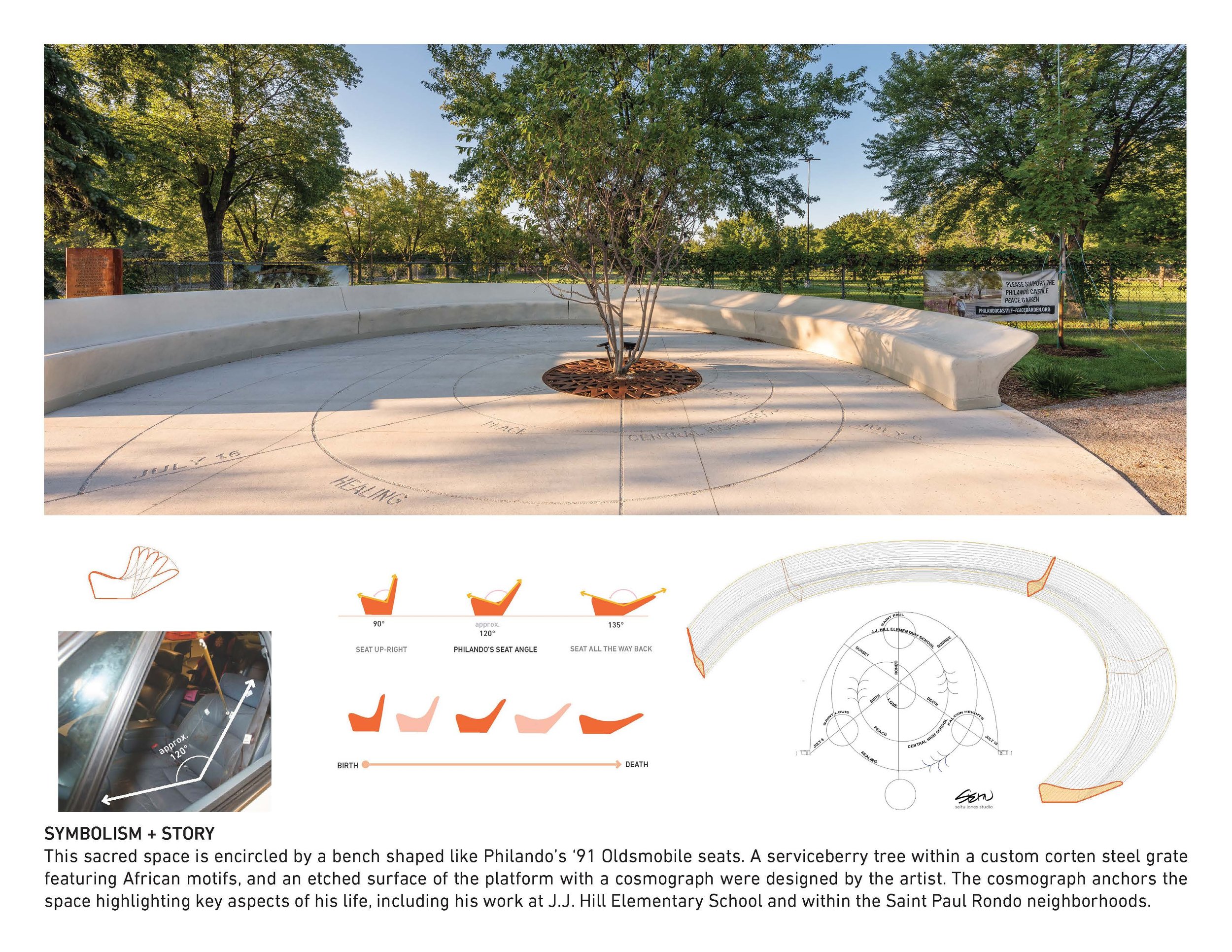 The Philando Castile Peace Garden in Falcon Heights, MN, epitomizes a sanctuary of reflection, healing, and advocacy for justice dedicated to Philando Castile. In response to his heartbreaking murder, a coalition comprising of his family and community with the combined expertise of a landscape architect, architect and artist, transformed the scene of a tragedy into a bastion of peace. This collaboration yielded a garden enriched by art, communal gardening, and photo narratives, marking the location of Philando’s untimely death as a ground of communal unity, activism, and memory, embodying a commitment to societal change and healing.